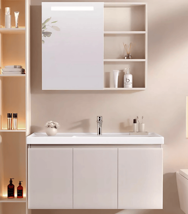 这款浴室柜在收纳、美观性、便捷性、清洁性、照明、环保性等方面都表现出色。它为用户提供了一个既实用又舒适的卫浴空间,让日常使用和清洁都变得更加轻松便捷。