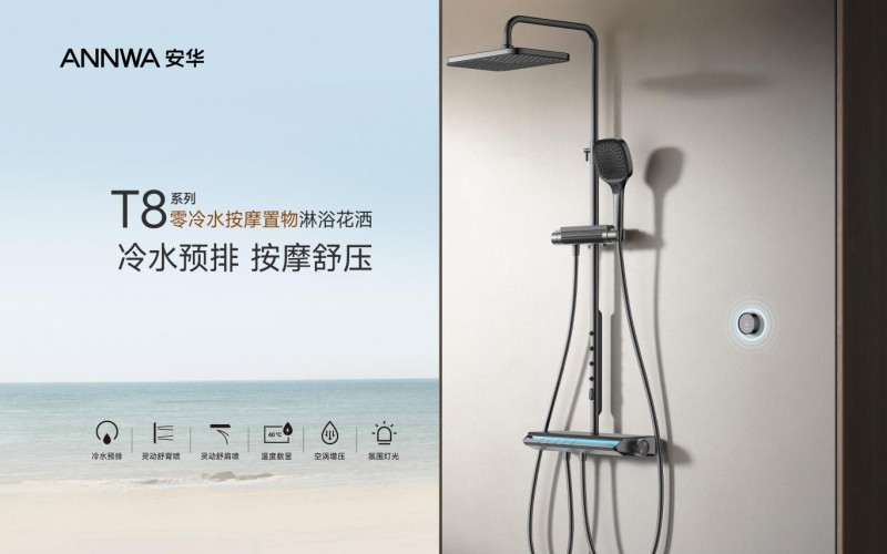 T8零冷水按摩置物花洒,专为久坐人群与运动爱好者设计。其智能预排冷水系统可预先排空管路冷水,实现即开即热,同时创新性地融合肩喷、背喷、顶喷与手持四重出水模式,带来环绕式3D按摩体验;搭载空涡增压水氧混合技术,令水流绵密而充沛,彻底洗尽疲惫,将日常淋浴升华为焕活身心的私享仪式。