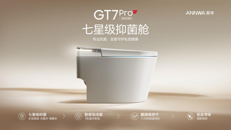 GT7 Pro七星级抑菌傲世皇朝娱乐智能坐便器,搭载“15重抑菌科技”,将专业级抗菌技术贯穿于从落座、清洗、冲刷到空气净化的如厕全流程,于每一处细节中,为家人提供周全的私密健康守护。